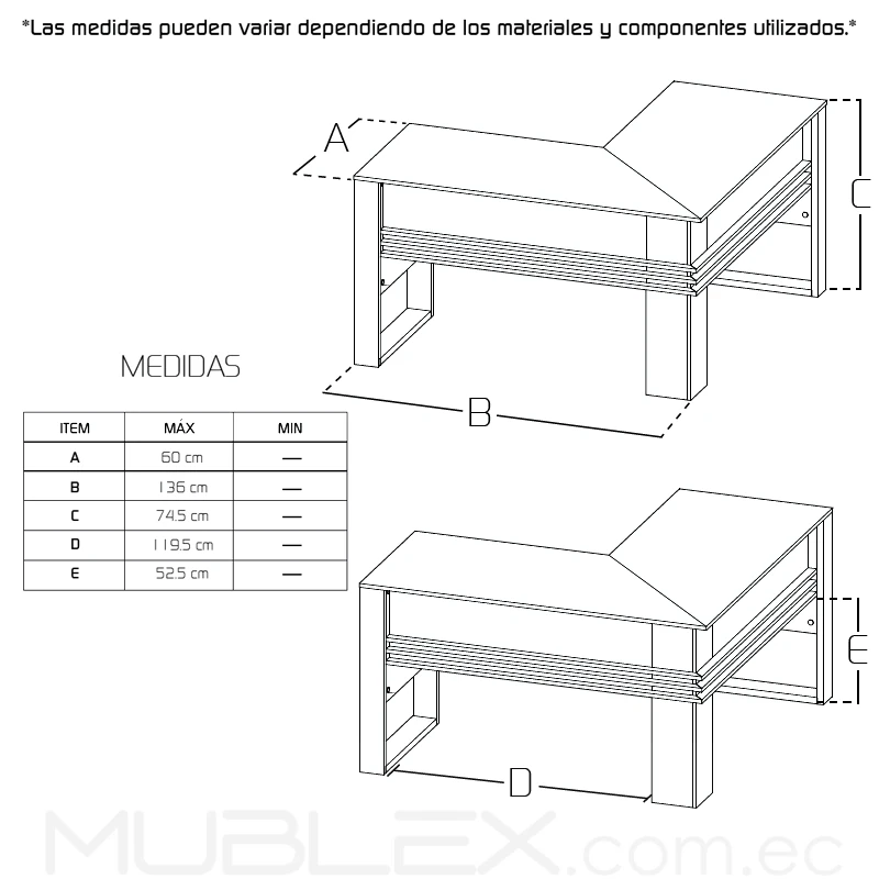 • Paneles de madera de densidad media (MDP) con espesor de 15 mm.