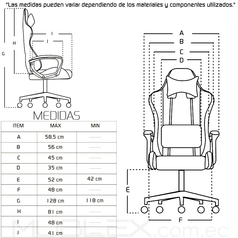 | Espaldar | Apoyo lumbar regulable en altura |